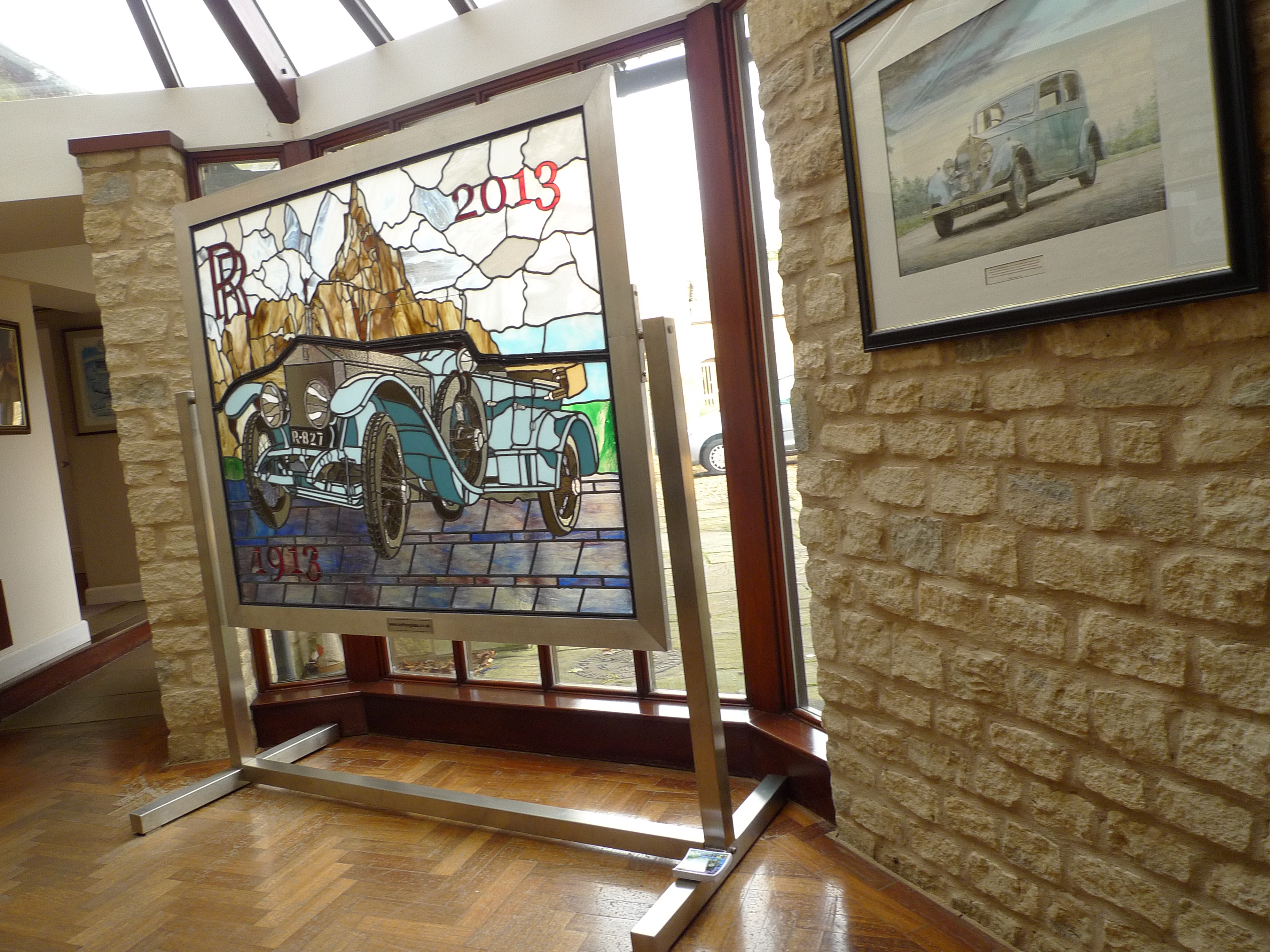 RREC headquarters receives Rolls Royce stained glass – back in the Spring the Radley Ghost panel was on display at P & A Wood which was detailed in a previous post here After that launch the panel went from Great Easton over to the Veteran Car Club’s headquarters in Ashwell to be part of the President’s Lunch display. During this excellent day I was introduced to Trevor Baldwin who is the Chairman of the Rolls Royce Enthusiasts Club.